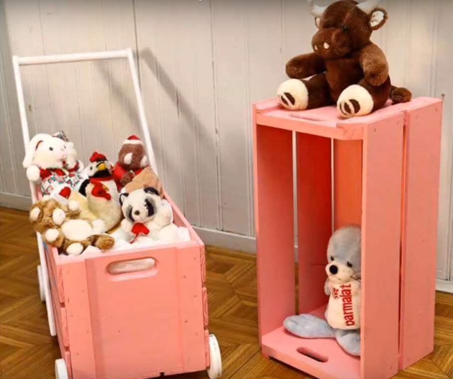 Самое простое, что можно сделать из старых ненужных ящиков – преобразить их в предмет декора. Зачастую для этого нужно покрасить ящики в другой цвет или хотя бы покрыть лаком. Также подойдет обработка наждачной бумагой, что способствует эффекту состаривания. Но такой декор подойдет далеко не всегда – ящики должны идеально вписываться в интерьер, так что если стиль помещения Вашей комнаты не винтажный, не кантри и не прованс или другие похожие на них стили, эффект состаривания лучше опустить. Внутри ящика могут находиться различные предметы, например, статуэтки или всякие мелочи.