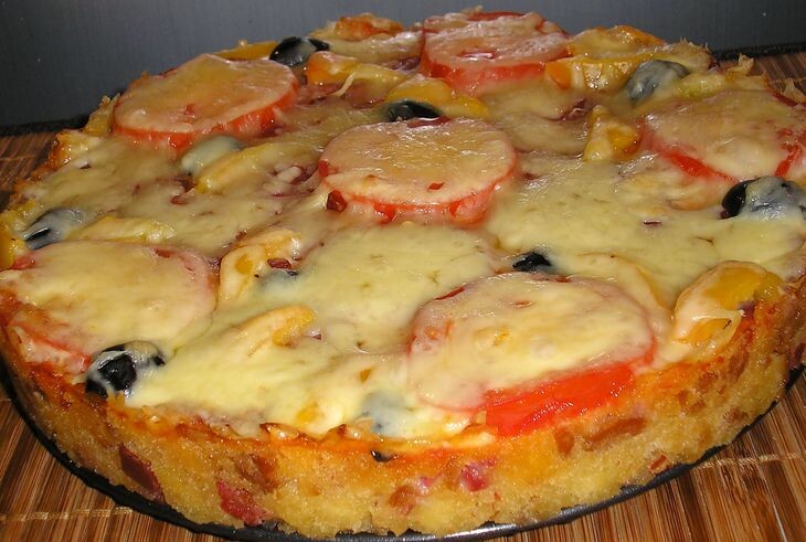 У нас нет духовки, а так иногда хочется вкусного пирога, поэтому искала способ приготовления на сковороде) Итак, коротко и быстро: Ингредиенты: - пшеничная мука – 5 ст. ложек - майонез – 50 г - ветчина – 100 г - сметана – 50 г - сыр – 100 г - кетчуп - яйцо – 1 шт 1. Смешиваем яйцо, майонез и сметану и добавляем муку (лучше просеять) 2. Выливаем на сковороду, смазываем кетчупом, раскладываем ветчину и сыр 3. Выпекаем до расплавления сыра под крышкой! Общее время приготовления 20 минут! Готовый пирог можно украсить зеленью. В рецепте были еще оливки, но у меня их было мало и я сделала 2 сорта сыра, добавила помидоры, получилась вкуснотища типа пиццы, но все-таки - пирог! Я рада, если вы разделяете со мной чувство прекрасного)