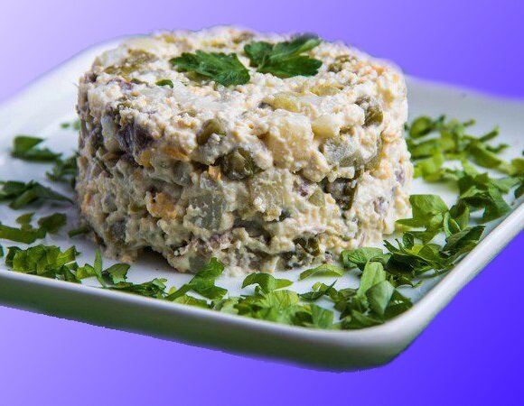 Сколько рецептов у легендарного салата "Оливье" - и не сосчитать. Многие домохозяйки уже давно отошли от истоков приготовления этого блюда. И практически под этим названием мы получаем совершенно разные, непохожие друг на друга салаты. Здесь я расскажу, как готовит его одна моя знакомая, и я теперь делаю так же. Поскольку считаю способ очень удачным, и очень многие, кто пробовал, разделяют моё мнение. Во-первых, никаких яблок и моркови. Зелень так же отметается. Картофель нужно отваривать "в мундире", затем обязательно охладить его, нарезать кубиками, посолить и смешать с небольшим количеством растительного масла. Только после этого добавляем его в салат. Яйца добавляем исключительно рубленные, никаких тёрок. Огурцы желательно брать с кислинкой, лучше маринованные. Репчатый лук нарезаем как можно мельче, чтобы не скрипел на зубах. Зелёный горошек лучше взять салатных сортов, он мягче и нежнее. Колбасные изделия с салат не добавляем. Я беру грудку птицы: курицы или индейки. Можно испол