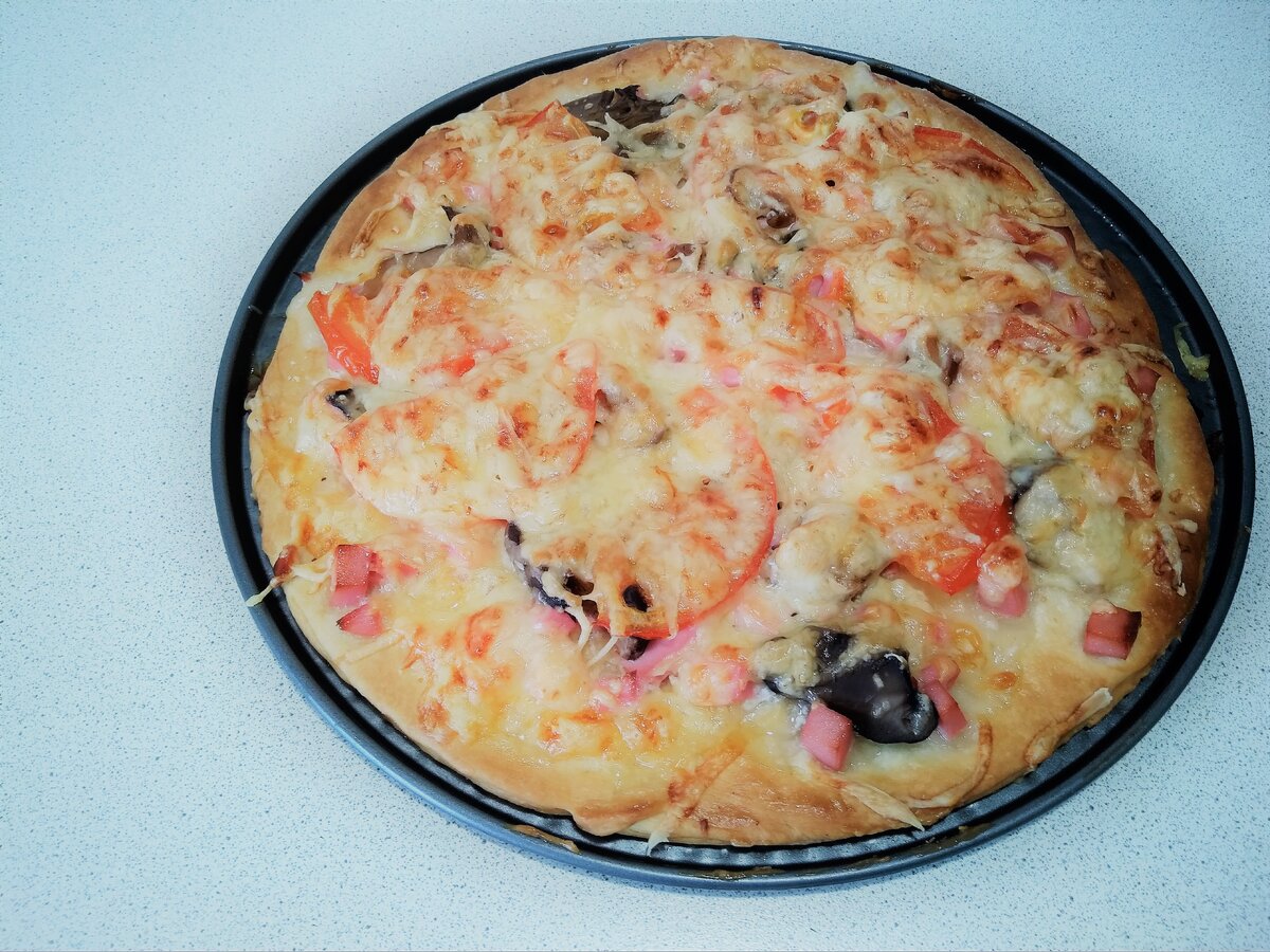 Домашнюю тонкую пиццу в духовке способен приготовить даже самый ленивый кулинар. Главный секрет этого рецепта пиццы - класть в нее то, что тебе нравится больше всего. Домашняя пицца отличается от итальянских аналогов тем, что в ней начинки гораздо больше и она намного сытнее. Подробный пошаговый рецепт домашней пиццы смотри в видео. Ингредиенты 1. Дрожжевое тесто 2. Помидор 3. Колбаса 4. Грибы 5. Сыр 6. Соусы Как приготовить домашнюю пиццу? 1. Нарезаем помидор полукольцами, колбасу и грибы кубиками, сыр трем на терке. 2. Раскатываем тесто и выкладываем его в форму. 3. Смазываем тесто соусом. 4. Выкладываем колбасу, грибы и помидоры. 5. Посыпаем сыром. 6. Запекаем в духовке при 200 градусах в течение 20-25 минут. Приятного аппетита! P.S. Еще больше рецептов можно найти на моем канале