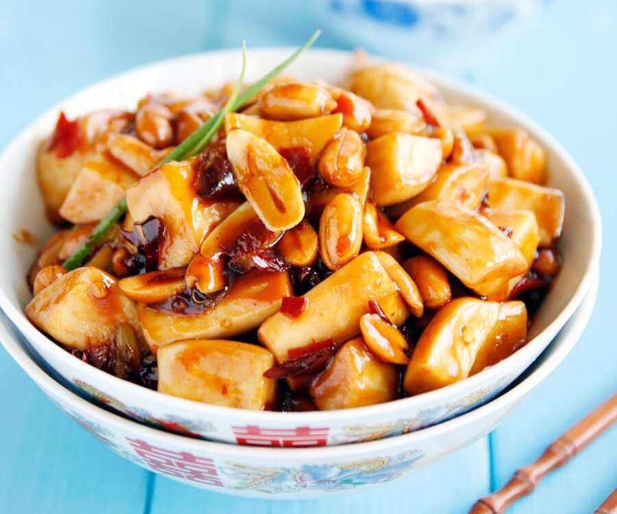Ингредиенты: 250 г – грибов еринги (вешенка степная) 60 г – жареного арахиса 3 зубчика – чеснока 2 см – имбиря 5 см – лука порея 1 ч.л – сычуаньского перца 2 шт – сушеного перца чили 2 ст.л – сахара 2 ч.л – пасты доубаньцзян 1 ст.л – кунжутного масла 1 ст.л – кукурузного крахмала 1 ст.л – соевого соуса 2 ст.л – темного рисового уксуса Приготовление: Приятного аппетита! Если вам понравилось, поставьте 👍, чтобы понимать предпочтения участников канала и быть более полезным. Если вам интересна данная тема подпишитесь на канал "Китай на вкус". Где я беру соусы, пасты, приправы … для блюд китайской кухни