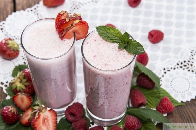 Для коктейля вполне подойдут сушёная мята и замороженная малина. Не менее вкусным получается и клубнично-медовый вариант