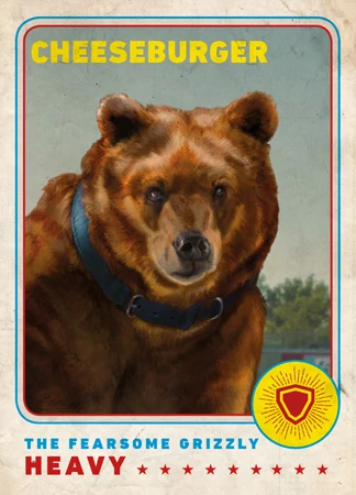 Чизбургер был найден еще детенышем, евшим жирные объедки в мусорном баке за Гриль-Стрик. Его решили оставить и заботиться о нем после того, как узнали, что его мать застрелили браконьеры. Уэйд Фаулер отнес его в F.A.N.G. Центр (приют для животных), там его кормили из бутылочки и заботились о его здоровье. Оказывается, рацион из гамбургеров и картофеля делает ужасные вещи с организмом молодого медведя: у Чизбургера развился диабет, который требует ежедневных инъекций инсулина. Это, в сочетании с его эмоциональной привязанностью к Уэйду и его брату, означало, что Чизбургер никогда не сможет вернуться в дикую природу. Поэтому братья Фаулер построили для медведя свой собственный домом в F.A.N.G. Центре, что сделало Чизбургера звездой и местной знаменитостью. Когда пришел культ, Уэйд быстро понял, что Иаков захочет забрать Чизбургера для своих экспериментов. Тогда, чтобы не позволить этому монстру издеваться над своим любимым медведем, Уэйд решил освободить его.