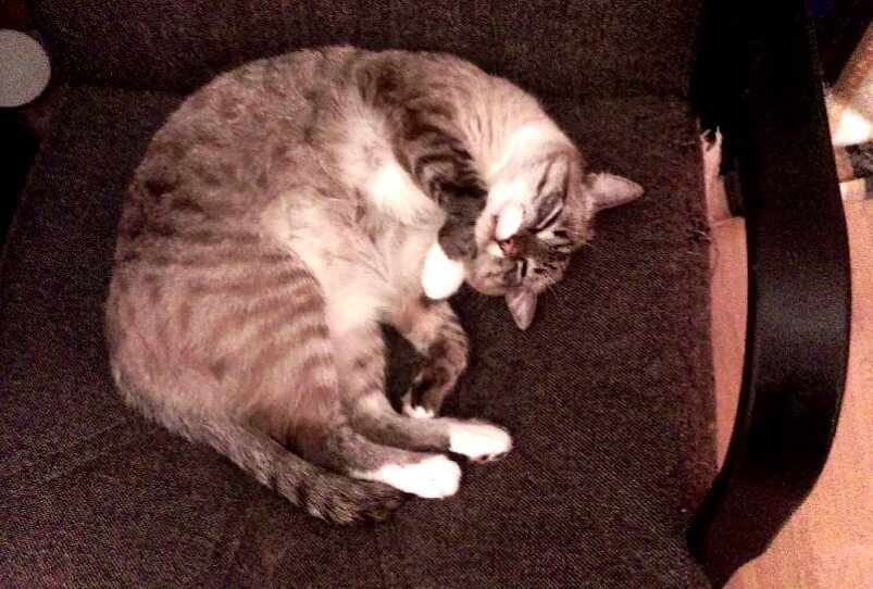 Сначала он в образе лермонтовского "печального Демона" недовольно и сумрачно носился по доступной для этого жилплощади. Затем в край достал Чернуху так, что мирная кошка с ревом и неконтролируемой жестокостью была вынуждена дать агрессору отпор. Тогда он решил, что самое время одиноко отдохнуть на "контуперном" кресле. Но вот незадача - сегодня суббота, я не на работе и сижу в этом кресле.