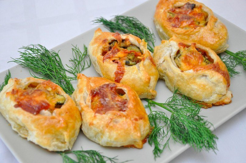Предлагаю вашему вниманию еще одну закуску! Теперь это будет блюдо из слоенного теста и с начинкой. Получается очень красиво!