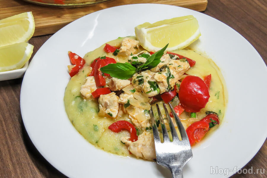 В общем, хвала Шефмаркету, который просвещает нас и знакомит с ингредиентами кухонь мира, ну а мы мотаем на ус )). Сегодня сделаем поленту с добавлением чеснока, базилика и сливочного масла. А сопровождением она пойдёт вкуснючей курице в лимонной заливке. Продуктовый набор: Разогреваем духовку до 180°С.