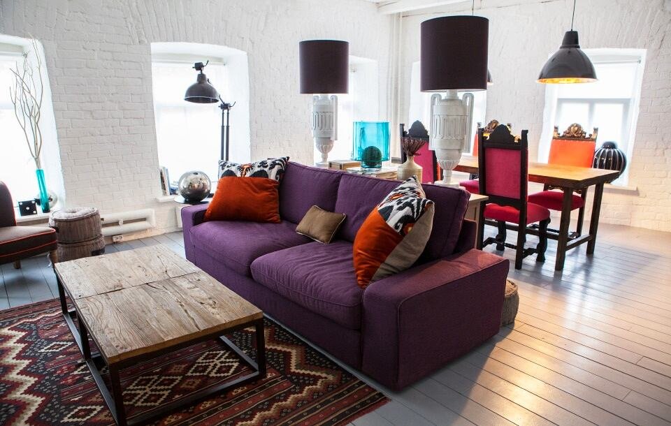 Сегодня мы рассмотрим, как из убитой квартиры в 100-летнем доме сделать роскошные апартаменты и не потратить на это все свои сбережения Фото ДО ремонта О планировке Было решено двухкомнатную квартиру превратить в студию с отдельной спальней. Все перегородки были снесены, кроме входа с спальню. В результате работ мы получили 3 отдельные зоны: гостиная, столовая и кухня. Следующей задачей было гармонично оформить интерьер. Большая комната В условной гостиной решили сделать акцент на ярком диване с контрастными подушкам. Перед ним расположили имитированный камин со свечами. В этой зоне именно он и стал ключевым элементом дизайна. Всё пространство основывается на использовании белой кирпичной фактуры. Натурально, светло и стильно. Часть стены решили оформить зеркальной панелью, которая визуально увеличивает объем комнаты. Обеденная зона расположилась рядом с функциональной и большой кухней. Деревянный большой кухонный стол выглядит довольно строго, но за счет декорированных стульев не вы