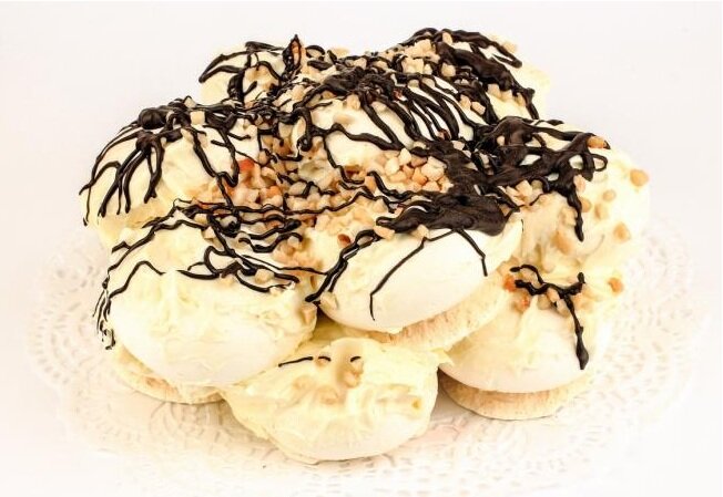 Есть несколько вариантов приготовления данного торта. Причем все они отличаются очень сильно друг от друга. Единое, что их объединяет – это форма. Он выглядит несколько хаотично сложенным. Предлагаю Вам вариант торта «Графские развалины» с безе и масляным кремом на сгущенке. Ингредиенты : Орехи грецкие – 1 стакан Чернослив без косточек – 150 г. Шоколад - 50-100 г. Для безе: Яичные белки – 4 шт. Сахар – 1 стакан Для крема: Масло сливочное – 250 г. Сгущенное молоко – 8 ст.л. Приготовление: Охлаждённые яичные белки слегка взбейте миксером. Постепенно не прекращая взбивания всыпьте сахар. Взбивайте белки до получения устойчивых пиков. Противень или форму для запекания застелите пергаментной бумагой. При помощи ложки выложите на неё белки. Выпекайте безе 10 минут при 110 градусах. Затем уменьшите температуру и выпекать 1 час при 95 градусах. После этого желательно оставить безе сохнуть в выключенной духовке. Пока безе говится приготовьте крем. Взбейте мягкое сливочное м