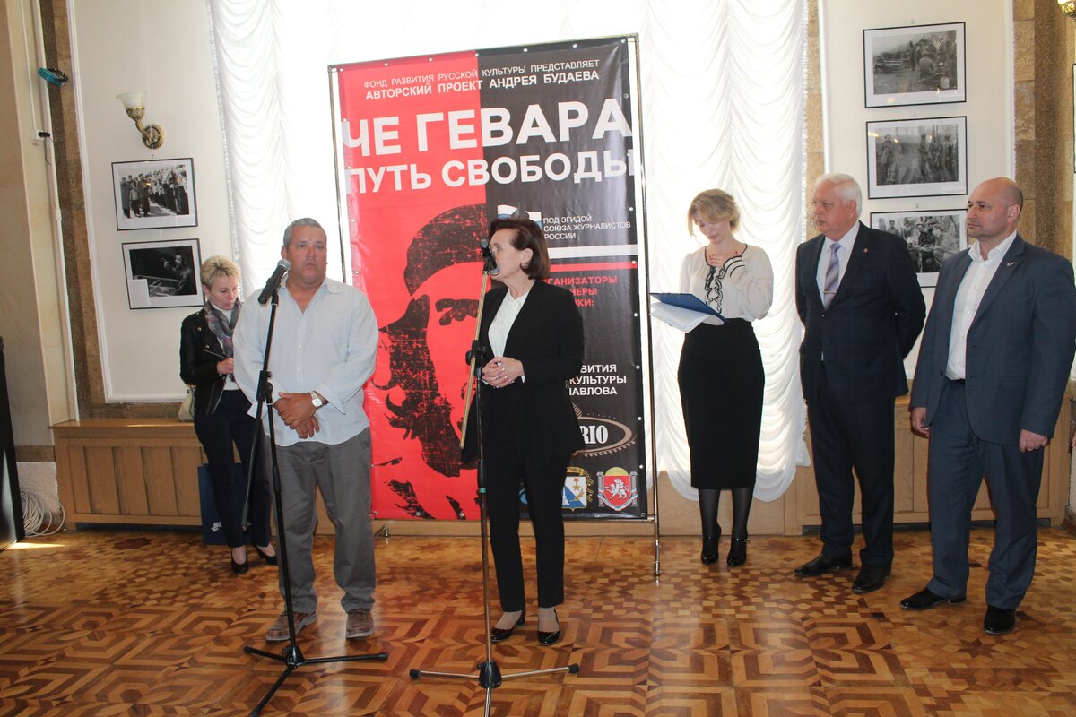 В Севастопольском центре культуры и искусств открылась фотовыставка «Путь свободы», посвящённая 90-летию кубинского революционера Че Гевары. Представлены несколько десятков фотографий, повествующих о его жизни. На открытии экспозиции присутствовал сын Че Гевары – Эрнесто Гевара. «Инициатива проведения выставки в Севастополе исходила от Фонда развития русской культуры – её организовывала не кубинская сторона. И я с радостью откликнулся, мне это очень понравилось. Таким образом, выставка проходит в трёх важных городах – Симферополе, Севастополе и Москве», – отметил он. Гевара показал портрет отца, снятый в 1966 году, когда тот отправлялся в Боливию – он загримирован и совершенно не похож на себя – таким его в последний раз видел сын. «Группа революционеров, уезжающих в Боливию. Мы его тут никогда не узнаем. Он даже начинал говорить с другим акцентом – аргентинский и испанский сильно отличаются. Че Гевара говорил, как испанец», – сказал Эрнесто. На выставке представлены детские портрет