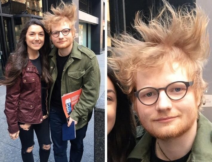 «Я хотела просто сделать селфи с Эдом Шираном, но ветер сделал наше фото в 2 раза более эпичным»