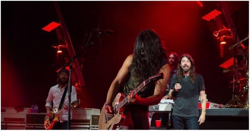 The fan is so cool played on stage with the Foo Fighters that singer stepped in front of him on his knees.