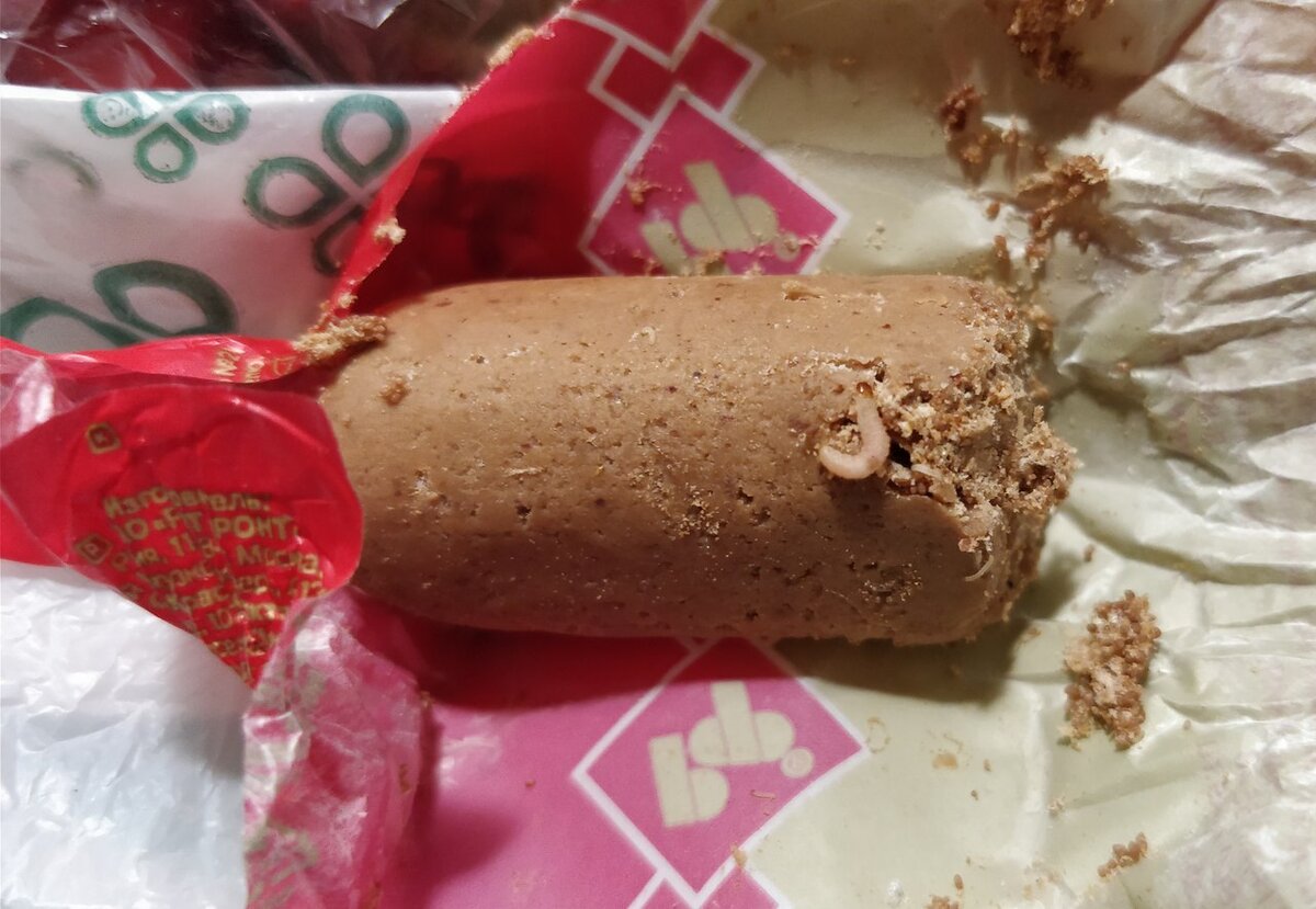 МАГАЗИН ЛИХО ТОРГОВАЛ ЧЕРВИВЫМИ КОНФЕТАМИ Ростовчанка выиграла суд у магазина, в котором ей продали конфеты с насекомыми. Речь идет о супермаркете торговой сети «Перекресток» на улице Текучева 139-а. Молодая женщина приобрела батончики «Рот-фронт» в фасованном пакете, заплатив за них 134 рубля. Но когда дома начала есть конфету, почувствовала во рту что-то странное. Посмотрела на батончик и с ужасом поняла, что откусила часть какой-то личинки. Внутри обертки виднелся помет насекомого... Это было так отвратительно, что молодую женщину чуть не вывернуло наизнанку! Открыв еще несколько конфет, она обнаружила, что и они поражены насекомыми. Поскольку магазин отказался возвращать покупательнице стоимость червивых конфет, она обратилась за помощью к специалисту по защите прав потребителей Евгению Викторовичу Рязанцеву. - Вместе с моим знакомым мы посетили магазин, где ростовчанка приобрела испорченные батончики. Практически сразу обнаружили в одной из конфет червяка, в другой - паути