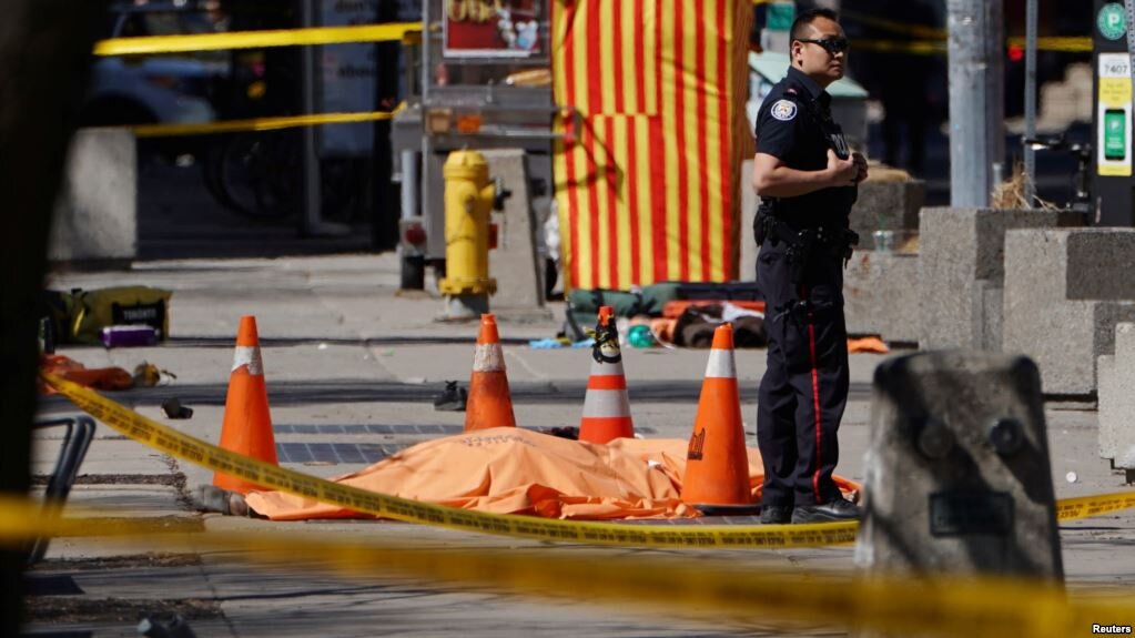 ВАШИНГТОН, 23 апр. По меньшей мере девять человек погибли, еще 16 получили ранения при наезде микроавтобуса на пешеходов в Торонто, заявил заместитель шефа городской полиции Питер Юэн. "Мы можем подтвердить, что на настоящий момент погибли девять людей и 16 получили ранения", — сказал он на пресс-конференции. Министр охраны общественной безопасности Канады Ралф Гудэйл назвал инцидент в Торонто "очень серьезным", отказавшись при этом спекулировать на тему возможного террористического акта. По его словам, пока нет информации, которая бы потребовала изменения уровня оценки риска. Гудэйл также отметил, что канадские власти не получали информации, что участники саммита G7 (проходит в городе с 21 по 23 апреля) могли стать целью атаки.