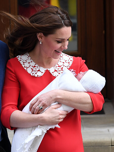 времени стала мамой сына. Младенец весит 3,8 килограмма. Роды прошли в лондонской больнице Святой Марии – там же, где родились предыдущие дети герцогини и ее супруга принца Уильяма. Их старший сын Джордж родился 22 июля 2013 года, а дочь Шарлотта, родилась 2 мая 2015 года. Этот мальчик стал пятым в очереди на британский престол и шестым правнуком королевы Великобритании Елизаветы II. После того, как стало известно о беременности Кейт, СМИ Британии сообщали, что пол ребенка не будет известен до момента его появления на свет. Однако после победы футбольной команды "Астон Вилла" принц Уильям, являющийся ее фанатом, проговорился. Он признался, что хочет назвать третьего ребенка Джек (так зовут игрока этой команды – имеется в видуДжек Грилиш). После короткой паузы принц добавил: "...или Джеки" (в случае рождения девочки). При этом сайты, отслеживающие ставки, 23 апреля сообщили, что чаще всего британцы ст