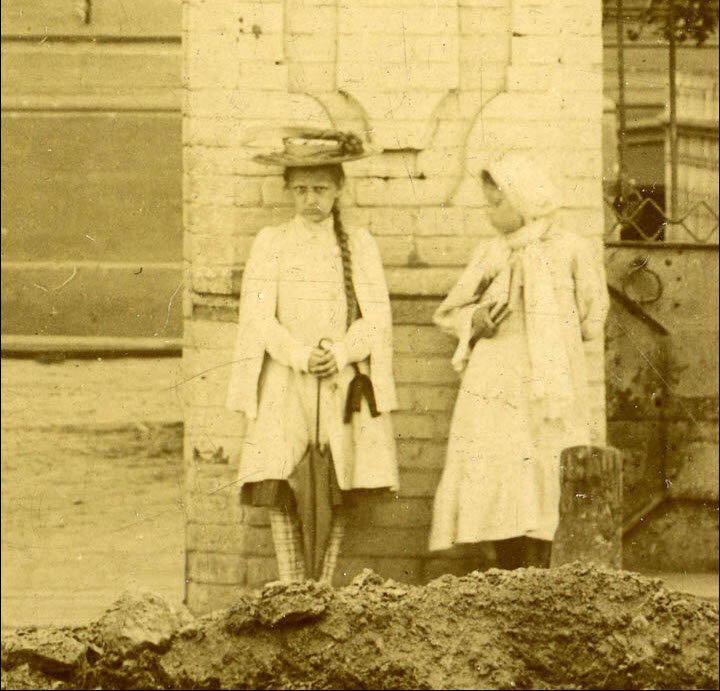 Когда частная компания заинтересовалась архивными снимками достопримечательностей Красноярска, работники музея обнаружили в них странную закономерность. Более, чем на 20-ти снимках на заднем плане появлялась одна и та же девочка. Описание внешности ребенка Девчушка на фото всегда выглядит одинаково. Это ребенок 8-10 лет с хмурым выражением лица. По одежде можно предположить, что она не из бедной семьи. Головной убор – широкополая шляпа. В руках сложенный зонтик. На ней всегда светлое пальто. Из-под него выглядывает подол темного платья. Коса с лентой – это прическа, с которой ребенок появляется на всех снимках. Она всегда лежит на правом плече. Несмотря на неизменность образа, которая бросается в глаза с первого взгляда, отличия все же есть. Девочка появляется на снимках в разных чулках и сапогах. Личность девочки Если бы не одна особенность, ничто не привлекло бы внимания к появлению ребенка на снимках. Они были сделаны в период с 1906 по 1908 год. Временной промежуток в 3 года долже