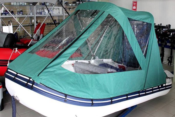 Современные интернет-магазины предлагают большой выбор тентов для ПВХ-лодок. Дешевые и дорогие, большие и маленькие, универсальные и трансформеры. Каждая из моделей имеет свои преимущества и большинство из них можно скомпоновать по функционалу. Носовые тенты. Как видно из названия, эта категория тентов располагается на носу лодки и служит защитой от встречных волн. Форма этого тента спроектирована таким образом, чтобы не просто принять на себя волну, но и развести ее по обеим сторонам борта. Так пассажиры защищены не только от прямых волн, но и от брызг. При выборе носового тента стоит учитывать, что волны по высоте и массе бывают разными. Поэтому нужно заранее позаботиться о креплении тента на судне: чем больше элементов крепления, тем лучше. Как правило, каркас таких тентов выполнен из легкого и прочного алюминия, а сам тент выполняют из брезента разной окраски. Также в продаже имеются носовые тенты с окнами и полностью прозрачные конструкции, выполненные, как правило, из морозос
