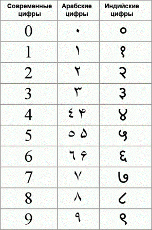 Фоменко и Носовский в своих книгах утверждают, что древняя Индия - это Древняя Русь (не совсем так, но читателям понятно). И, кажется, они правы. Подтверждение этому мы можем найти, если внимательно рассмотрим, разработанную мной, теорию происхождения цифр. Все знают со школьной скамьи, что цифры, которыми мы пользуемся в обычной жизни, называются арабскими. Якобы эти цифры пришли к нам от арабов. А к арабам они пришли из Индии. Осталось придумать, откуда они пришли в Индию. Давайте посмотрим, как выглядели индийские и арабские цифры. Можно долго разглядывать эти "первобытные" загогулины, но всё равно не найти ответа на вопрос - почему цифры были именно такими. Молчит наука. Подобные загогулины сейчас может придумать каждый, было бы воображение. А потом под эти, вновь придуманные изображения, можно придумать теорию о том, что первые цифры в Индию пришли из Китая, из Атлантиды, да хоть с Марса. Убедительных доказательств всё равно нет. С той же школьной скамьи меня занимал вопрос - поче