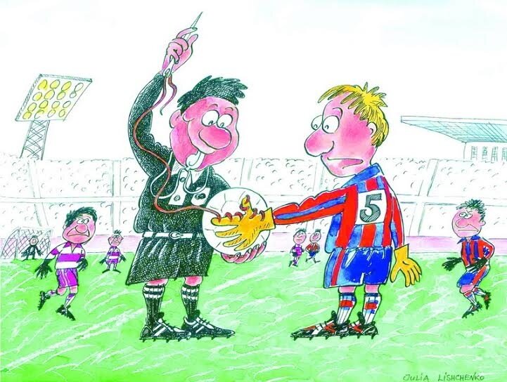— Ребята! — кричит с трибуны дедок-ветеран. — Мы их мочили под Сталинградом, Курском, на Днепре, в Берлине!!! А вы, паразиты такие , позорите нас!