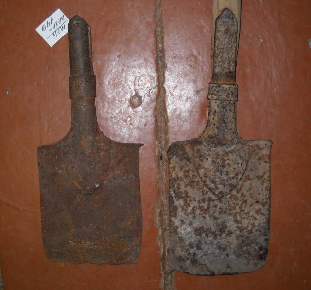 Щербакова Нина Петровна в дополнение к предыдущим дарам как-то передала в Изборский музей саперную лопатку с деревянной ручкой. На фото она представлена в сравнении с уже имеющейся в фондах музея. Как атрибутируются эти лопатки? Камрады пишут, что это стандартные саперные лопатки времен Первой мировой войны (5 заклепок, прямой срез пера). Выпускались до 1917 года. Оригинал поста с обсуждением в моем блоге starcom68 Понравилось? Ставьте лайк и подписывайтесь на мой канал в Дзен #Изборск #Музеи #Артефакты #Саперные лопатки