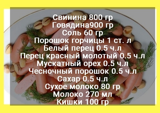 Здравствуйте Мои Дорогие!!! Приготовим с Вами вкусные сосиски прям у себя дома. Мы готовили всей большой и дружной семьей и были в большом восторге!!! Специи выбирайте на свой вкус, я выбрала самые простые, чем только подчеркнула вкус!!! Мы создали сайт Вконтакте и в Однаклассниках, все самое новое Вы найдете там, присоединяйтесь!!!! Ингредиенты: Способ приготовления: 1. Режем на мелкие кусочки свинину и говядину. 2. Пропустим их через мясорубку несколько раз. 3. В миску высыплем все специи и сахар. 4.Нальем теперь прохладное молоко и высыплем все в фарш. 5. Ждем когда молоко уйдет в фарш. 6.Отправим фарш со специями в блендер, добавим молоко сухое и перемешаем. 7. Начиняем в кишку фарш и выкладываем в противень. Отправляем в духовку при 100*С на 60 минут и после отварим в воде минут 20. Приятного Аппетита!!! Угощайте друзей, Родных и Близких!!! Подписывайтесь, Не забываем ставить класс))) З