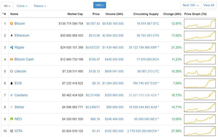 Стоимость криптовалюты Bitcoin (BTC) выросла до 8000 долларов в ходе торгов четверга, после чего немного отшатнулась назад. Это интересно и важно по двум причинам. Во-первых, даже 10% рост Биткоина серьезно увеличивает общую капитализацию криптовалютного рынка, с 280 до 310 миллиардов долларов, это много. Во-вторых, это может означать начало нового бычьего рынка, которого все ждут очень давно. Криптовалютный рынок переживает циклы взлетов и падений, которые сопровождаются радостью и депрессией соответственно. Вчера держатели биткоинов получили заряд оптимизма, когда цена BTC выросла на 1000 долларов буквально за полчаса. Это самый высокий подъем с конца марта и 11-процентный рост за день. Несмотря на зеленые стрелки на графиках, конец марта и начало апреля были достаточно хмурыми для владельцев «цифрового золота». Новости предвещали «смерть битку», «лопнувший пузырь», «крест смерти», но все обошлось. Причиной нового роста называют отмену запрета на владение биткоинами по законам шари