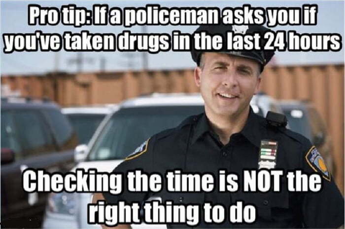 Если полицейский спрашивает тебя не употреблял ли ты наркотики за последние 24 часа?