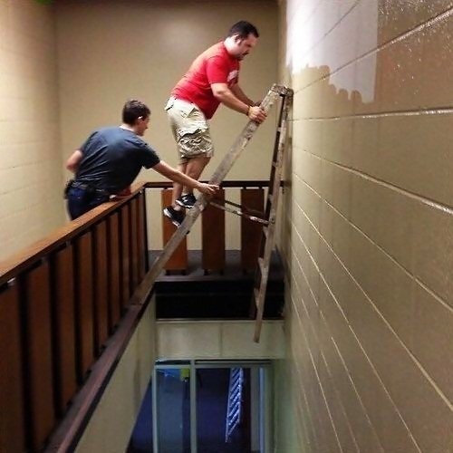1. Когда страхует друг, ничего страшного не произойдет 2.Экстремальная починка кондиционера 3. Почему бы не спрятаться от солнца в тени экскаватора 4. Если есть страховка, то все возможно 5.Эти парни знают законы физики 6. Лестница коротка, не беда, позови двух друзей и все дела 7. Главное не смотреть вниз 8. Когда не стриг газон пару недель 9. Раствор крепкий выдержит 10. Вот тут пятнышко осталось, я быстро 11. Искра, буря, безумие 12. А вас тоже кладка смутила? 13. Классный шуруповерт 14. Каска +200% к живучести