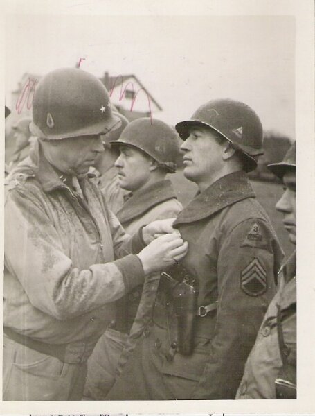 Американский генерал Морис Роуз во время награждения военнослужащих своей дивизии.