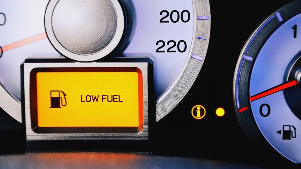 Признак первый: показания уровня топлива. Если его стрелка (или количество палочек-делений) стремится к нулю, бензин заканчивается. Далеко не каждый автолюбитель может точно понять, сколько бензина в литрах осталось в баке (особенно если речь заходит как раз таки о «палочках»). Но во многих современных автомобилях есть замечательный девайс – бортовой компьютер. Он может показать не остаток топлива в литрах, а то расстояние в километрах, на сколько его хватит. И если там написано «50 км», то это не значит, что путём чтения мантр этот бензин можно растянуть на 150. Да, резерв, конечно, есть. Но на нём лучше не ездить.