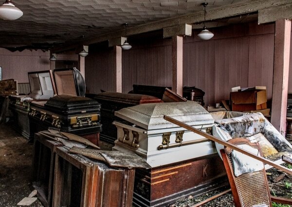 Здание в Джексонвилле, штат Флорида, стоит на этом месте с 1856 года, когда Calvin Oak и его сын Byron открыли в нем похоронное бюро. После смерти отца, сын продолжил похоронный бизнес. В начале 1990-х здание было продано, после более века работы, в 2013 году бюро переехало в более современное и комфортабельное здание. Похоронное бюро пустует уже три года, однако в нем все еще хранятся брошенные гробы, химические вещества, катафалк и даже кремированные останки бывших клиентов. Эти снимки сделал анонимный фотограф, одержимый красотой заброшенных мест. Источник