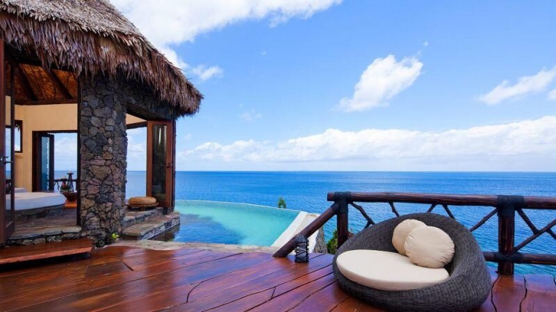 5 место . Отель Laucala Island Resort. Находится на Фиджи. В отеле всего 25 вилл, каждая с бассейном. В дизайне каждой просматриваются традиционные мотивы острова: крыши из листьев пальмы, дога, стебли папоротника и т.д. В стоимость проживания входит: питание, услуги водителя и няни, гольф, рыбалка и многое другое. По правде говоря и стоимость то не маленькая. Одна ночь-от 25 000$ за ночь. 4 место. Отель Atlantis Paradise Island Resort. Этот отель нередко называют целым городом. Располагается он на Багамах и по праву входит в 5 лучших отелей. В него входит более 3000 номеров, 20 ресторанов, 9 кафе, 6 баров, 3 песчаных пляжа, 9 открытых бассейнов, 3 детских бассейна, аквапарк, дельфинарий, океанариум, SPA-центр и много другое. Королевский сьют-от 25 000$ за ночь. 3 место. Отель Four Seasons. Отель находится на самых богатых улицах Манхэттена, расположившись в памятнике архитектуры. Из окон открывается потрясающий вид. Предоставляются услуги водителя, СПА, питание и многое другое.