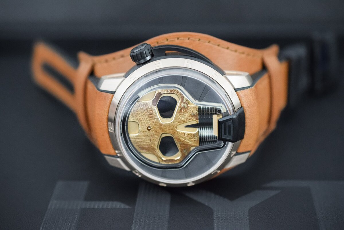 HYT создал уникальную и очень смелую версию часов Skull с необычным циферблатом и слегка уменьшенным диаметром: The Skull 48.8. Размеры корпуса уменьшились с 51 мм до 48,8 мм и идеально подходят для мужчин имеющих тонкие запястья. Часы украшены патинированным черепом. Такая его отделка является провокационной и придает и без того необычным часам статусности. Современный и смелый дизайн от HYT - фирменный стиль бренда. Возможно это очередная дань моде, но можно с уверенностью сказать, что мастера создавшие в XVI веке первые носимые часы, в разгар художественного жанра «Memento Mori», сразу же осознали бы значение символа. "Используйте большую часть своего времени, друзья, потому что жизнь коротка!" Время в часах указывается капилляром, который обрамляет контур черепа. Корпус для версии Skull 48.8 выполнен из 5N Pink Gold. Цифры указаны на диске внешнего ободка, имеющего великолепный зернистый эффект. Ремешок выполнен из черной матовой кожи аллигатора. Вторая версия The Skull 48.