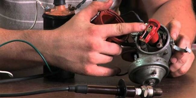 Проверка катушки зажигания Совет по безопасности: Работа возле работающего двигателя может быть опасна. Проверьте чтобы все было закреплено (в том числе волосы и одежда) и не прикасается к движущимся частям двигателя. Тестировать катушку зажигания на автомобиле довольно просто. Никаких специальных инструментов не требуется. Просто помните нужно быть осторожным, количество электроэнергии вырабатываемой вашей системой зажигания может быть опасным.Чтобы проверить катушку зажигания снимите провод со свечи идущий от катушки, затем выверните свечу свечным ключем. Далее поставить свечу обратно в свечной провод. Будьте осторожны, чтобы не уронить что-нибудь в свечное отверстие.