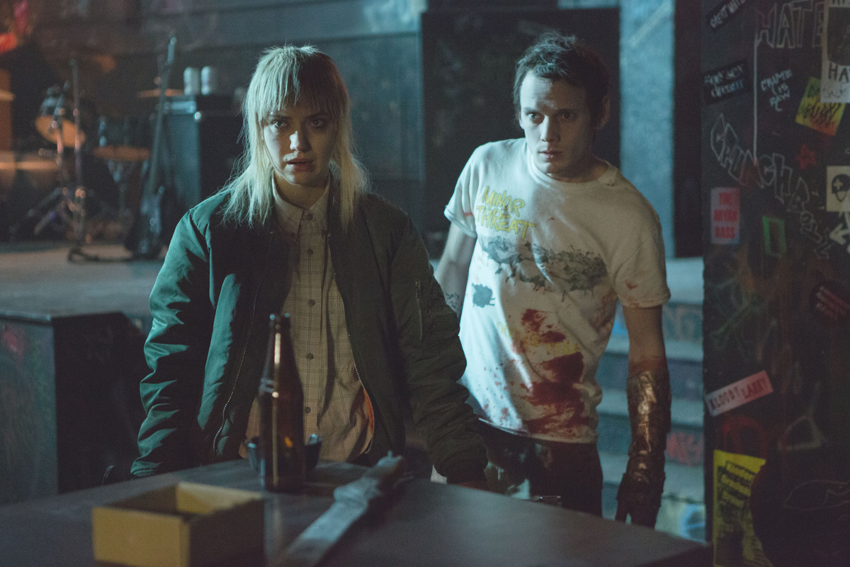 Хоррор с Антоном Ельчиным про стычку панк-рокеров и скинхедов Продолжаю непроизвольный хоррор-марафон: добрался наконец до “Зеленой комнаты” Джереми Солнье, который пару лет назад включали во все топы всего. Кино действительно очень бодрое и жилистое, способное удивлять некоторым жизненным цинизмом (при том, что в фильме с Патриком Стюартом, Антоном Ельчиным, Имоджен Путс и Марком Веббером, в принципе, несложно представить, кто доживет до финальной стадии, хотя есть нюанс). Очень на руку Солнье работает жизнеподобие: история про панк-рок-группу, которая колесит по США и дает концерты в забегаловках и прочих дырах, выглядит если не реалистично, то убедительно, поэтому в момент Х, когда посреди гримерки в заведении для скинхедов обнаруживается труп девушки с ножом в виске, это работает не как страшилка, а как анекдот (в своем первородном, порой жутком значении = реальный случай из жизни). Вообще хоррор, думается, - искусство (!) акцентное, важная часть его иконографии - это маски, монстр