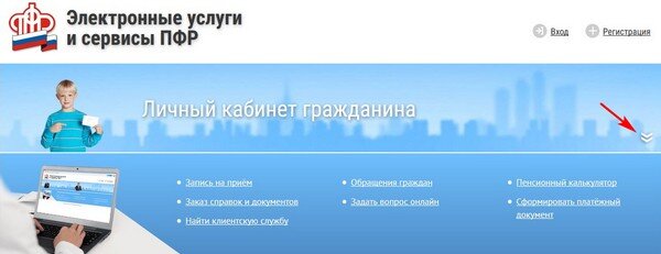 Заходим на сайте Пенсионного фонда России (http://www.pfrf.ru/). Сверху вы увидите Личный кабинет гражданина. Переходим туда. Шаг 2