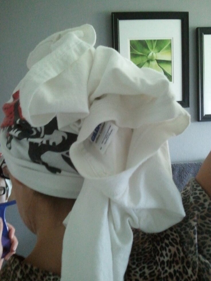 После душа можно вытереть волосы хлопковой футболкой вместо полотенца. Хлопчатобумажная ткань не вызывает ломки, а вода из ваших волос будет поглощаться быстрее. №2