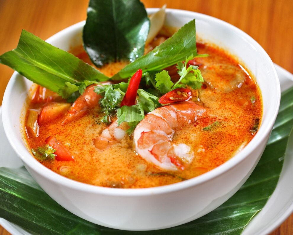 Тайская кухня очень богата и разнообразна своими блюдами. И считается одной из самых популярных кухонь в мире. Среди всего этого разнообразия, есть одно блюдо, которое поистине стало трендом, визитной карточкой Тайланда – это суп Том Ям. Сами тайцы очень любят этот суп и готовят его практически повсеместно. Очень полюбилось это блюдо и у туристов. Оно стало настолько популярным, что входит в меню ресторанов, многих стран мира. Итак, Том Ям – это кисло-острый суп, на основе бульона, с креветками, курицей, рыбой или морепродуктами. Название переводится буквально так, «Том» - «варить», «кипятить». «Ям» - «острый салат». Название Том Ям – это как общее определение для такого вида кисло-острых супов, а приставка в конце названия, отмечает, то, из чего этот суп. Например, Том Ям Кунг – это суп Том Ям с креветками, Том Ям Пла – суп с рыбой, Том Ям Кай – суп из рыбы. Видов и рецептов супа Том Ям огромное количество, меняющиеся от региона к региону. До сих пор появляются все новые виды этого