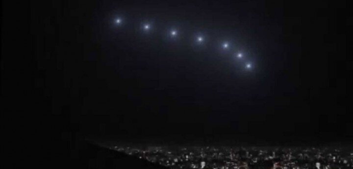 Около 20:20 по местному времени в небе неожиданно появилось 6 огней, выстроенных в линию. Затем стали появляться дополнительные огни - как в этой линии, так и вне ее.