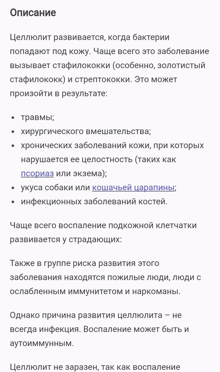 Начнем мы, пожалуй, с довольно распространенной и больной темы - целлюлит. И сразу же начнем рушить мифы - сейчас целлюлитом кличут простые неровности и бугорочки на женских попах. Но на деле, слово целлюлит в медицинских кругах имеет совершенно другое значение, а именно – воспаление (я тут скрин прикрепила, ознакомьтесь). Так что вот эта "апельсиновая корка", которая вызывает беспокойство, это лишь дряблая кожа, а бугорки образуются из-за разных по размеру жировых клеток в подкожно-жировой клетчатке. Все жировые клетки разного размера, из-за этого и формируется неровная поверхность кожи. Поэтому то, что девушки привычно называют целлюлитом, является решаемой проблемой с кожей. Хотя вот здесь надо сделать ремарку и сказать, что такое состояние кожи является НОРМАЛЬНЫМ для женского организма. Внешний вид кожи зависит от возраста. У молодых девушек кожа априори более упругая и подтянутая. Все поняли, что идеальная глянцевая попа это миф? Генетически в нас УЖЕ заложено то, какой будет на