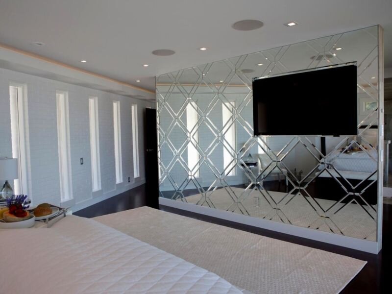Эти тенденции дизайнеры подхватили с выставки "Интерьер - 2018", где предлагалось широкое применение зеркал в виде панелей и зеркальных пленок. Такой универсальный предмет декора подойдет к любому стилю. Очень популярно применение зеркал в виде различных фигур животных, женского силуэта и другие дизайнерские штучки.