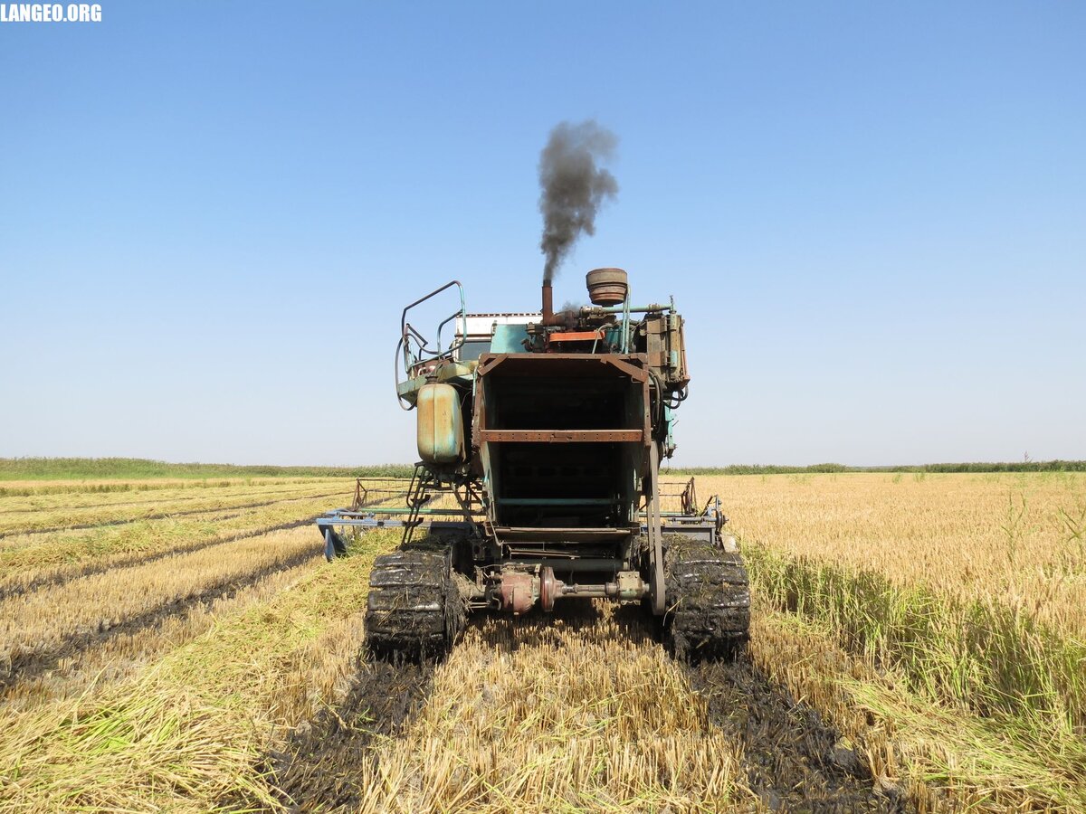 Комбайн на гусеницах явление достаточно редкое, ибо ареал их обитания ограничивается зонами с переувлажненными почвами. В основном, сельхозработы стараются производить в сухую погоду, и естественно, по сухой земле. В крайнем случае, при затяжных дождях, приходится убирать и в грязи, но это очень сложные условия и урожай иногда проще бросить, чем убирать, с трудом ползая по полю по самый бункер в грязи. Но это случается редко, и максимум, что используют в таких случаях - это полугусеничные модификации обычных комбайнов, у которых передние колеса заменены треугольной гусеницей. Но есть культуры, которые в принципе растут только на переувлажненных почвах, и уборка в грязи явление не редкое, а вполне себе ежегодное. Именно в таких условиях растут рис и соя. Если сое просто необходимо много воды, то рис растет только в проточной воде в специальных чеках, воду с которых начинают сбрасывать в сентябре, а это уже осень, дожди, и не просохнуть земля просто не успевает. Поэтому без гусениц