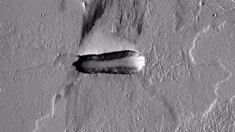 Любительские паранормальные исследователи обычно утверждают, что они обнаружили признаки древних инопланетных цивилизаций в материалах, опубликованных НАСА - от «чужих черепов» до структур, которые оказались не более чем странными породами, - но редко это доказательство представляется столь же бесспорным, как и это. Несколько в сообществе, занимающемся наблюдением за небом, придают весу теорию о том, что на Марсе на самом деле есть космический корабль-инопланетянин, и как только вы видите изображения, это на самом деле довольно убедительно. Крошечный всплеск ничем не примечательного участка марсианской пустыни выглядит очень похож на некоторые футуристические космические корабли, которые люди вызывали на протяжении десятилетий, а его существование (как и многие из отдаленных географических аномалий Марса) совершенно необъяснимо. Длинная цилиндрическая функция немного шире на одном конце, с тем, что кажется трехконечным «хвостом». Если бы вы увидели это в контексте научно-фантастическ