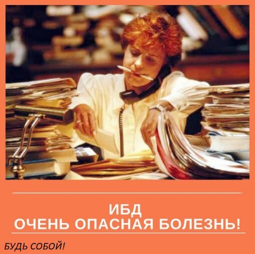 Остерегайтесь ИБД! Очень опасная болезнь! Она способна лишить Вас личной эффективности и затянуть в подавленное состояние.. Если у концу дня Вы дико устаете и при этом понимаете, что не сделали ничего такого, что могло бы положительно повлиять на качество Вашей жизни, значит Вам обязательно стоит дочитать этот пост до конца. Я знаю, какое лекарство может Вам помочь. Даже 2. Большинство людей встречают новый день неохотно, идут на работу и ждут, чтобы скорее наступил вечер, ведь можно будет пойти домой. А как же все любят пятницу, я вообще молчу. Как будто это мини-отпуск раз в неделю. Но не об этом сейчас. Чем большинство людей занимаются весь день? Правильно, ожиданием вечера. И многие даже не задумываются, что в это в время болезнь всё больше связывает им руки Этот коварный вирус проникает в разум каждого человека и беспощадно лишает его возможности для успехов как в жизни, так и в работе и в бизнесе. Вы уже догадались, о какой болезни я говорю? Это всем известная ИБД,