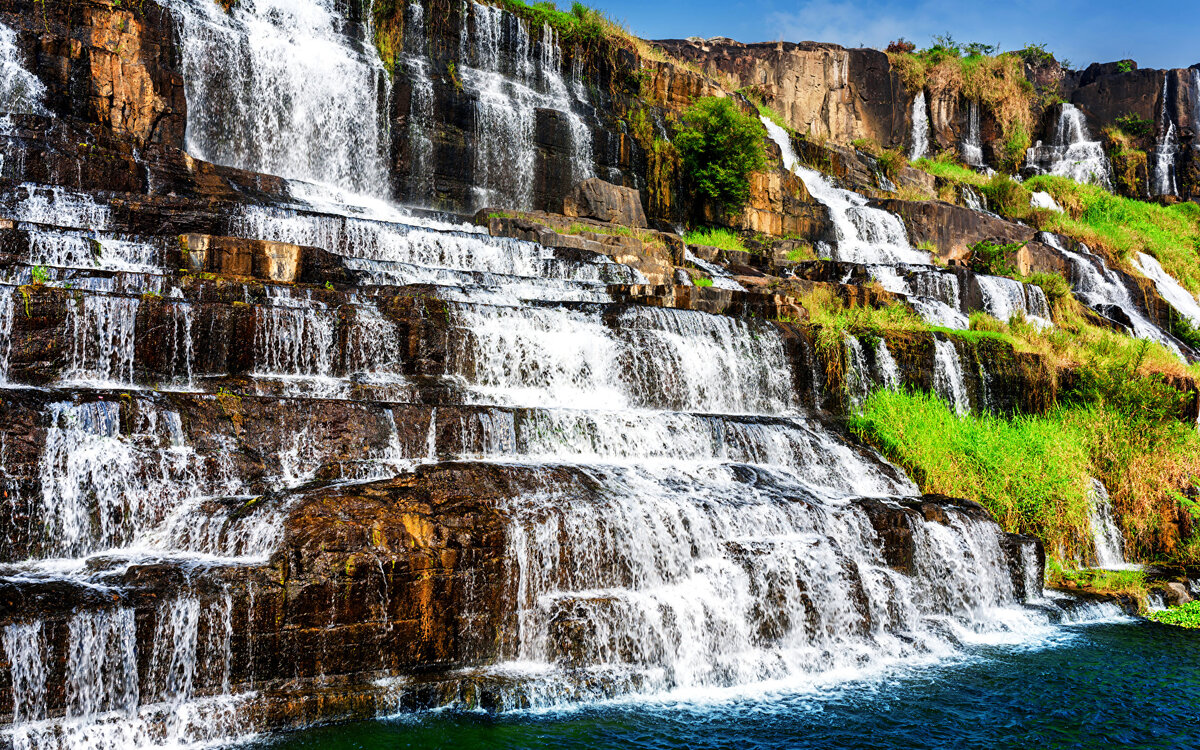 Известный как Город Любви, Далат во Вьетнаме — невероятно романтичное место. Там прекрасные водопады, поэтичные ландшафты, богатая история и культура. И особое место среди этого занимает водопад Понгур. 100 метров в ширину и 40 в высоту, Понгур состоит из 7 уровней и впадает в небольшое озеро. Окружен водопад 25 гектарами нетронутого тропического леса.