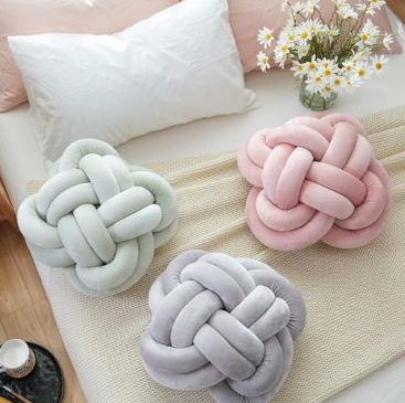 Новый тренд в интерьере в 2018 году - подушка-узел. Расскажем, как сшить такую в домашних условиях и сделать свой дом еще уютнее. Что нам понадобится? трикотажная ткань нитки под цвет ткани ножницы иголки холлофайбер (или синтепон) швейная машинка (но можно сшить и вручную) Что делаем? 1. Берем наш кусочек ткани. Теперь нам нужно сделать из него заготовку для нашей будущей подушки. Складываем ткань пополам вдоль, закалываем иголочками и разрезаем так, чтобы получилось две длинных полоски размером 160 х 15 см. Трикотажная ткань достаточно сложная в обращении, но тем она и прекрасна для нашего будущего изделия, потому что это всё-таки подушка, она должна быть мягкая, а трикотажная ткань отлично тянется и будет приятна в использовании. 2. Убираем иголочки. Теперь нужно получить из этих двух кусочков ткани один самый длинный, сшив две коротких стороны. При пошиве на машинке трикотажную ткань нужно растягивать, для того, чтобы потом в обращении можно было ее легко гнуть и при этом не порват