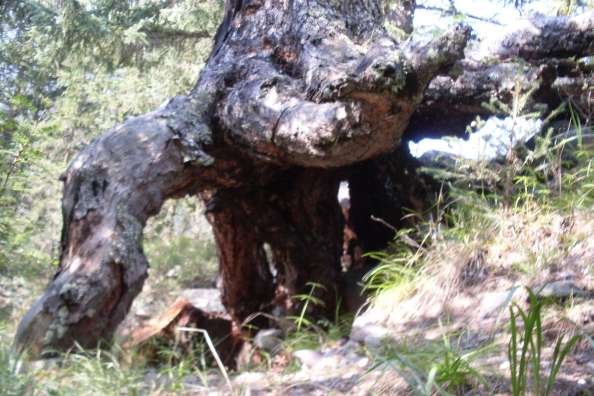 Странная та была ночь. Прошло шесть лет. запомнилась. Столько вместила в себя событий, стихийных, не зависящих от человека. Мы много путешествовали по Горному Алтаю. Загадочное место. Там, даже время движется по - своему, по другому. Остановились на привал у горной речки Ту-Ту, наскоро перекусив, и бросив спальные мешки в машине, уснули. Разбудил волчий вой у машины. К тому же машину подбрасывало. Тогда я в первый раз прочувствовала поговорку " Волосы встали дыбом" на себе. Волосы и правда шевелятся. Длилось это около 40 минут. Потом всё дальше, дальше. К рассвету стихло. Позже , мы не смогли проехать в Акташ, дорогу завалило. Обвал. Значит нам не померещилось. Было землетрясение. Муж утром уговорил пройтись по тропе, вдоль горной речки Ту-Ту. Не сразу согласилась. Странное местечко. Да и фотографии получились странные. С приведениями. В этом месте мне стало не по себе. Попросила мужа вернуться к машине. Но местечко сфотографировала. Уже дома , заметила старичка в шляпке на пеньке. Бу