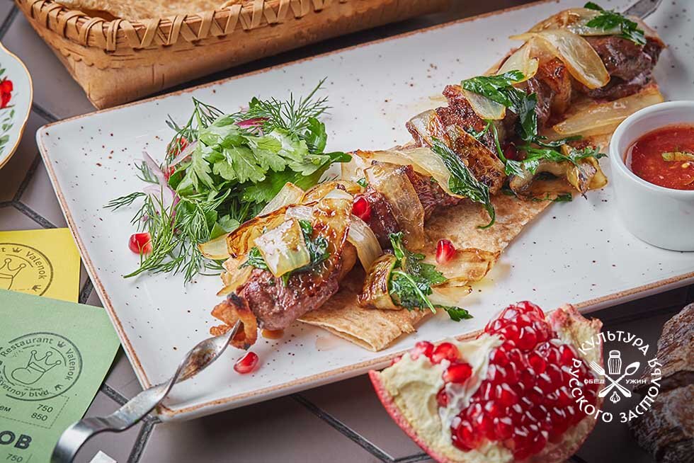 Только сейчас заметил, что не указано, когда солить шашлык. От себя добавлю — когда мясо будет на мангале. Ресторан Valenok