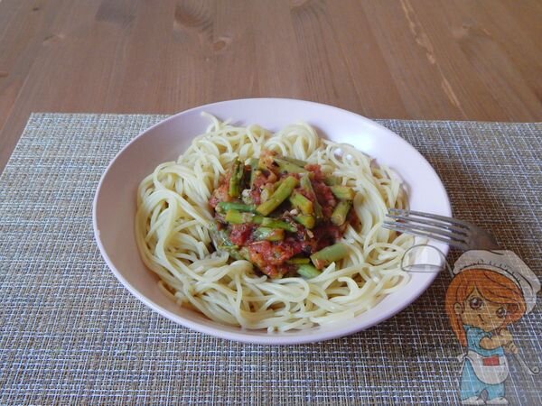Паста со спаржей и томатным соусом