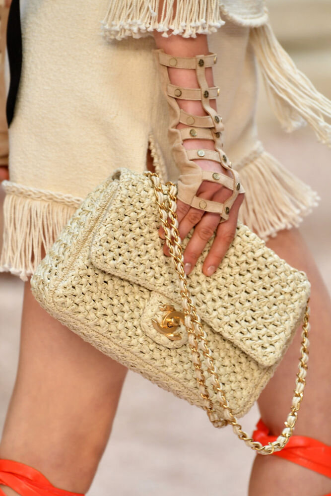 Уже не первый модный сезон и не единственный Дом моды предлагает нам для весны и лета красивейшие вязаные сумки. Дизайнеры используют для создания своих творений порой невероятные для вязания материалы, такие как шелк и кожа (!) и привычные, но не менее прекрасные: рафию, соломку, фантазийную или хлопковую пряжу. Цветовая палитра тоже разнообразна, представлены и черные сумки, и яркие однотонные, и цветные. Вязаные сумочки украшаются вышивкой, помпонами, кисточками, бахрамой, брошками, стразами, но всех их объединяет, что связаны они крючком! Наши рукодельницы уже подхватили эту идею, и создают свои шедевры крючком и спицами. Будем модничать! А пока предлагаю полюбоваться дизайнерским взглядом на сумочную моду сезона весна-лета 2018 и продолжить творить! Вот несколько примеров для вдохновения... Первым в моем списке будет любимый дом CHANEL, который для этого лета предложил красивейшую, на мой взгляд, круизную коллекцию! Сумочка из соломки И вязаные сумочки из шелка с показа пре