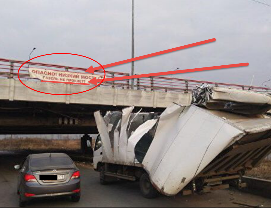 И только несусветная глупость наших водителей как всегда сильнее. Я, конечно, по работе бывал в районе этого моста, не раз под ним проезжал, но вот увидеть его жертву, повезло" только вчера. Это уже потом загуглил и узнал, что это была 146 "газелька", которая под ним не прошла.